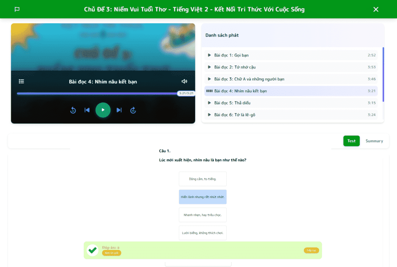 Mỗi Podcast được chia thành nhiều tập nhỏ, tương ứng với từng bài học/câu chuyện, giúp các em tiếp cận kiến thức một cách rõ ràng, sinh động và dễ hiểu. Nội dung nghe được thiết kế với nhiều giọng đọc, nhân vật và tình huống phong phú, tạo nên trải nghiệm học tập hấp dẫn, giúp học sinh ghi nhớ kiến thức hiệu quả và rèn luyện kỹ năng nghe một cách tự nhiên.